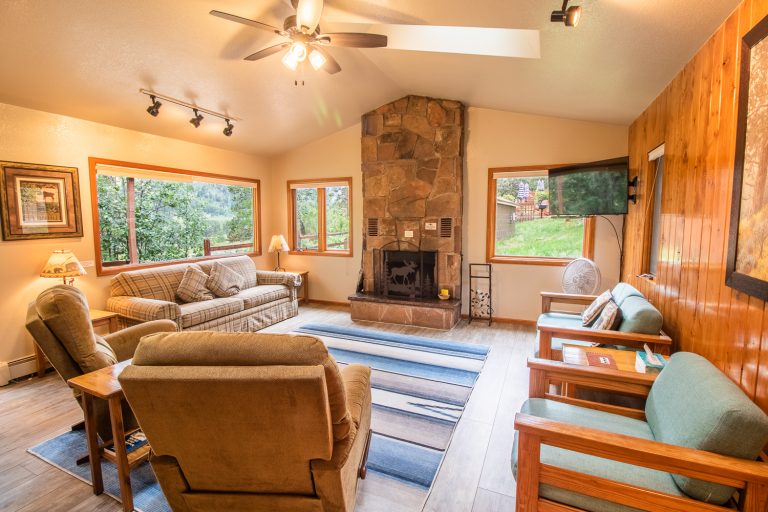 With expansive panoramic views of Deer Mountain, Sundance Mountain, and the Continental Divide, this outstanding cottage provides wonderful views of the mountains and local Estes Park elk and wildlife. Relax in the living room by the wood-burning fireplace, or head into Rocky Mountain National Park, only a half mile away. The fully stocked kitchen, king bed, jetted bathtub, and specialty amenities are the perfect toppers to your mountain home base. This one bedroom, one bath cabin sleeps up to four. Two La-Z-Boy Recliners and a queen La-Z-Boy Slumber Air Sofa Sleeper will help you settle in to your home away from home!