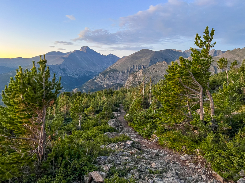 It was a chilly morning when I got out of my car at Bear Lake. I managed to bypass the timed entry system by simply getting up at 3:45 and heading directly into the park before the 5am timed entry requirement and, other than the early alarm, it was pretty easy. The parking lot was virtually empty as I headed counter clockwise around Bear Lake and hit the Flattop Mountain Trail.