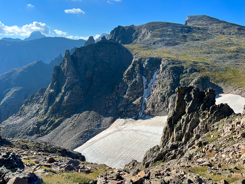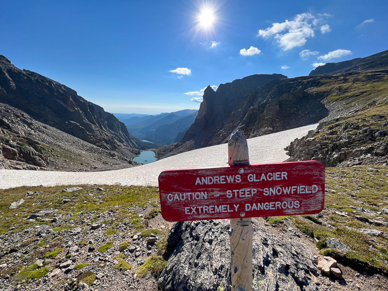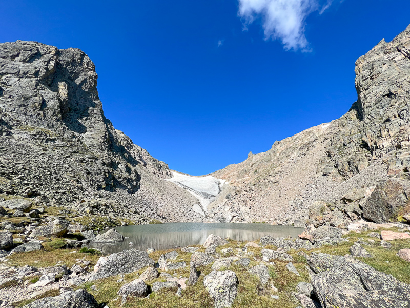 I spent a few minutes on Otis taking note of the many surrounding summits, looking west to Grand Lake, and day dreaming about future adventures, then started my way down the long tundra slopes to Andrew’s Glacier.